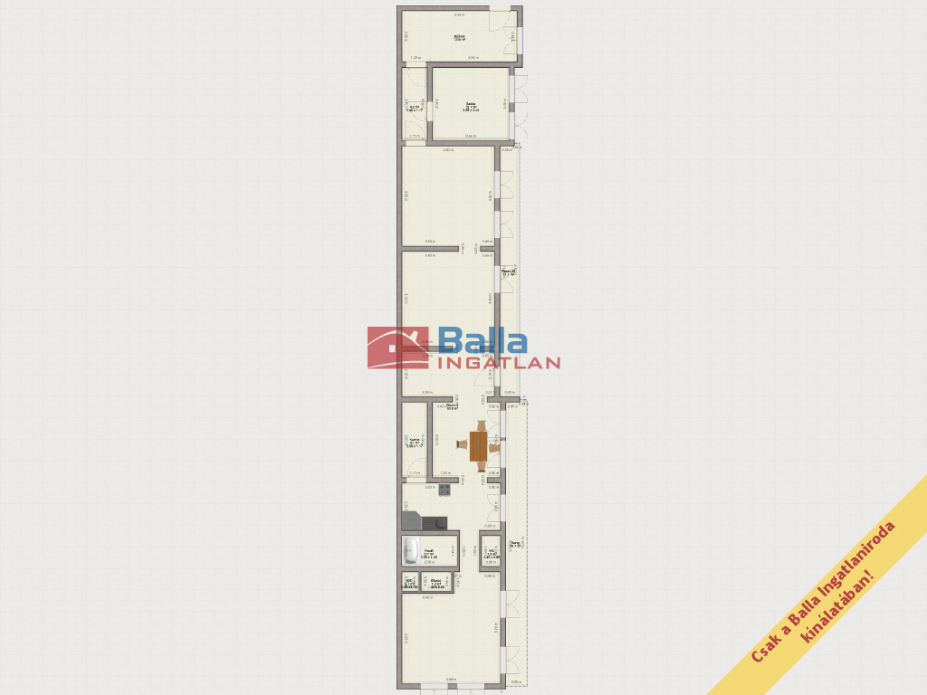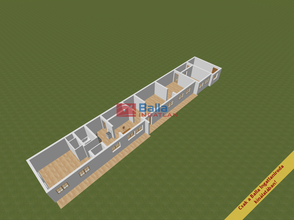 - Előszoba, 4 különnyíló szoba, konyha spájzzal.