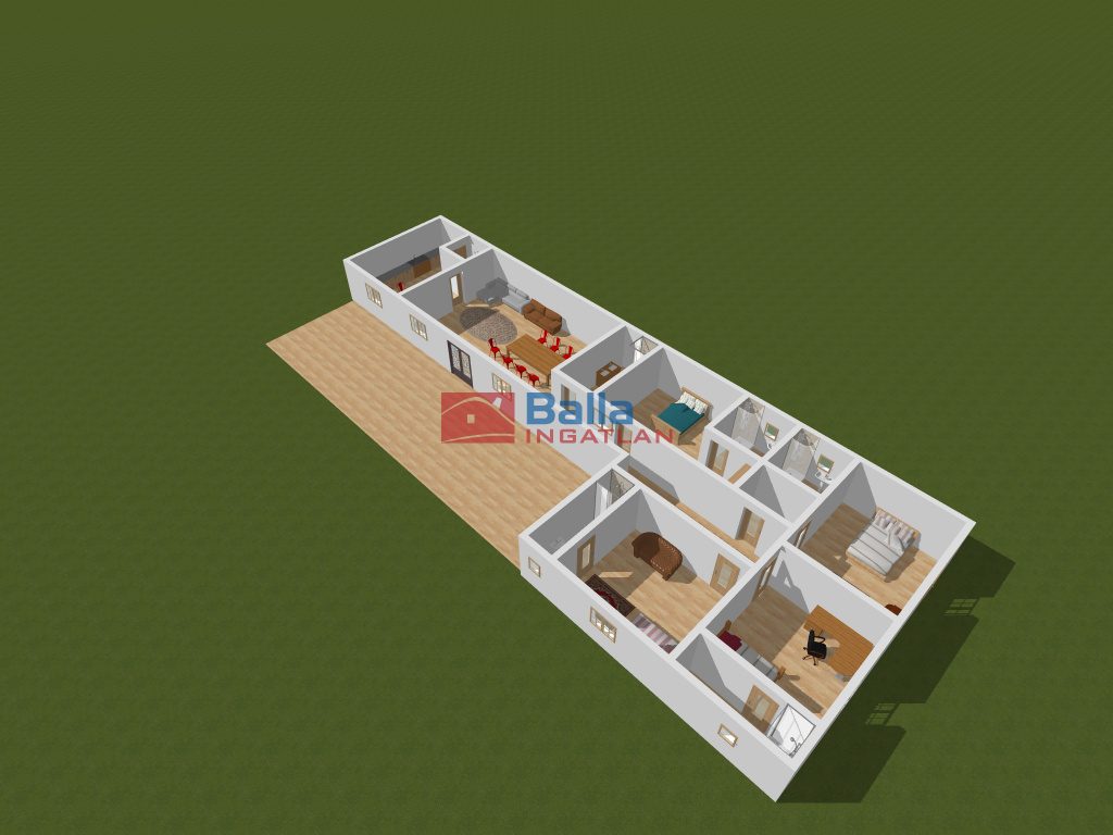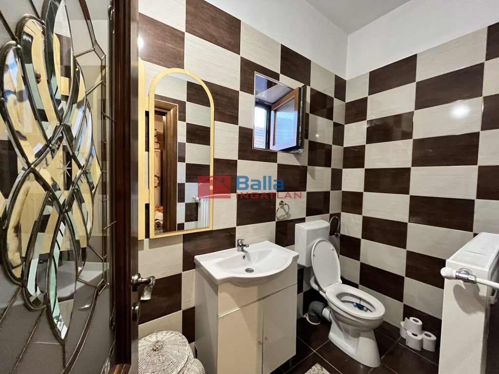 A 10 cm-es szigeteléssel ellátott, modern elrendezésű épületben egy nagyméretű, központi nappali, egy tágas, jól felszerelt konyha kamrával, valamint 5 külön bejáratú szoba található. Az ingatlan különlegessége, hogy minden egyes szobához saját, privát fürdőszoba és WC tartozik, így biztosítva a maximális kényelmet és privát szférát a család minden tagja vagy akár bérlők számára.