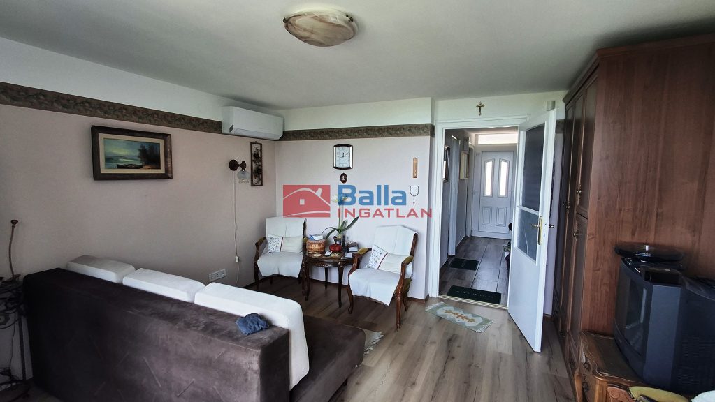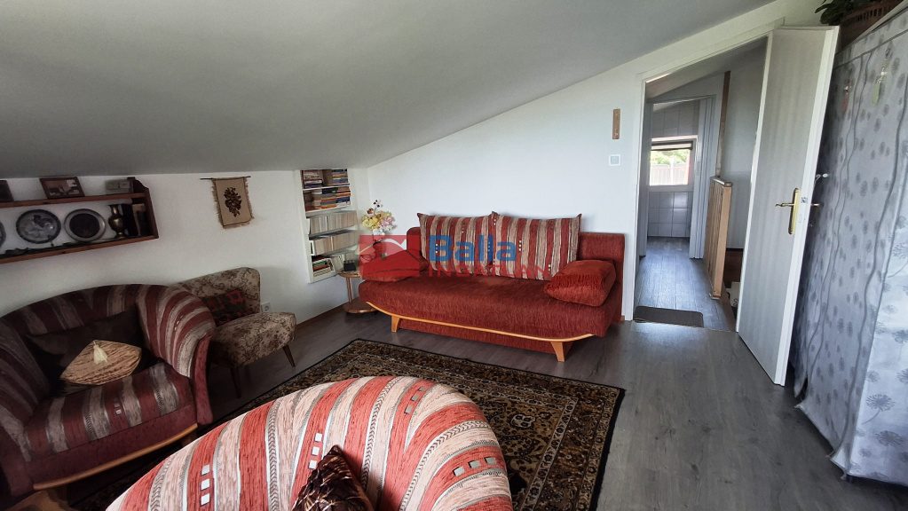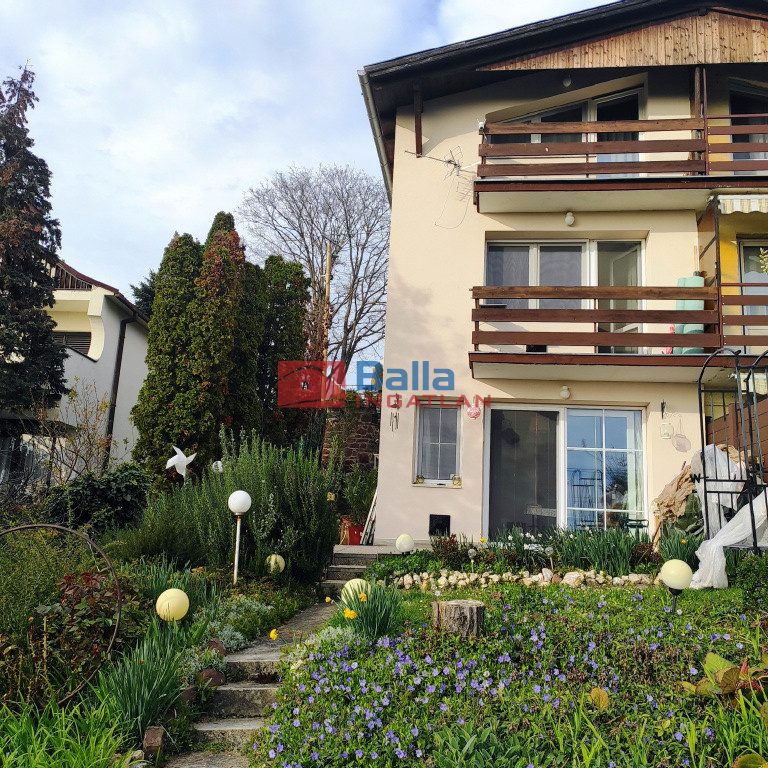 Az igényesen felújított ingatlanból három szintről csodálhatjuk a Balaton egész keleti medencéjét, a Tihanyi - félszigettel egyetemben. A 96 m2 + 37 m2 (terasz, erkély) alapterületű, 5 szobás, önálló helyrajzi számmal rendelkező ikerház két zárt autóbeállóval, 370 m2 saját kertkapcsolattal rendelkezik.