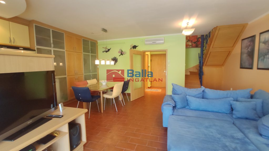 BALATONŐSZÖDÖN , közvetlen a vízparton épült igényes, karbantartott társasházban 3 szobás ,belül két szintes újszerű állapotban lévő lakás, körbekerített, saját stranddal eladó.