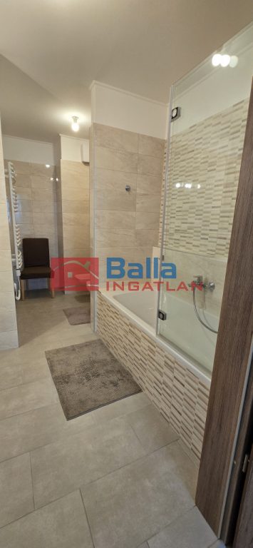 A tóval szemben lévő "J" épület 2. emeletén kínálunk hosszútávú bérlésre 95 m2 + 6 m2 erkélyes, dupla komfortos (két fürdő két toalettel) részben bútorozott, nappali + 3 hálószobás lakást. Az épület előtti felszíni gépkocsibeálló a bérleti díj részét képezi. Közös költsége 50 ezer forint. Ezen felül víz-villany-gáz fogyasztás után fizetendő (a januári fűtésszámla 15.085 forint volt). Applikációról és manuálisan programozható - állítható mennyezeti hűtés - fűtés került kialakításra, mely helyiségenként állítható hőfokú termosztáttal szerelt. Bérleti díja 399 ezer forint/hó+rezsi, két havi kaució szükséges. Május 1-től költözhető.