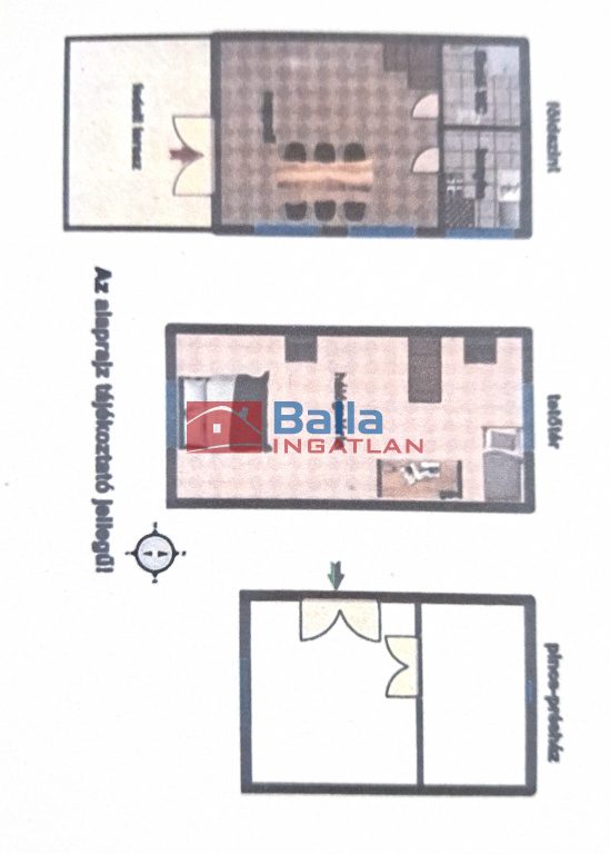 - Földszinten világos nappali, konyha, modern tusolós fürdőszoba WC-vel