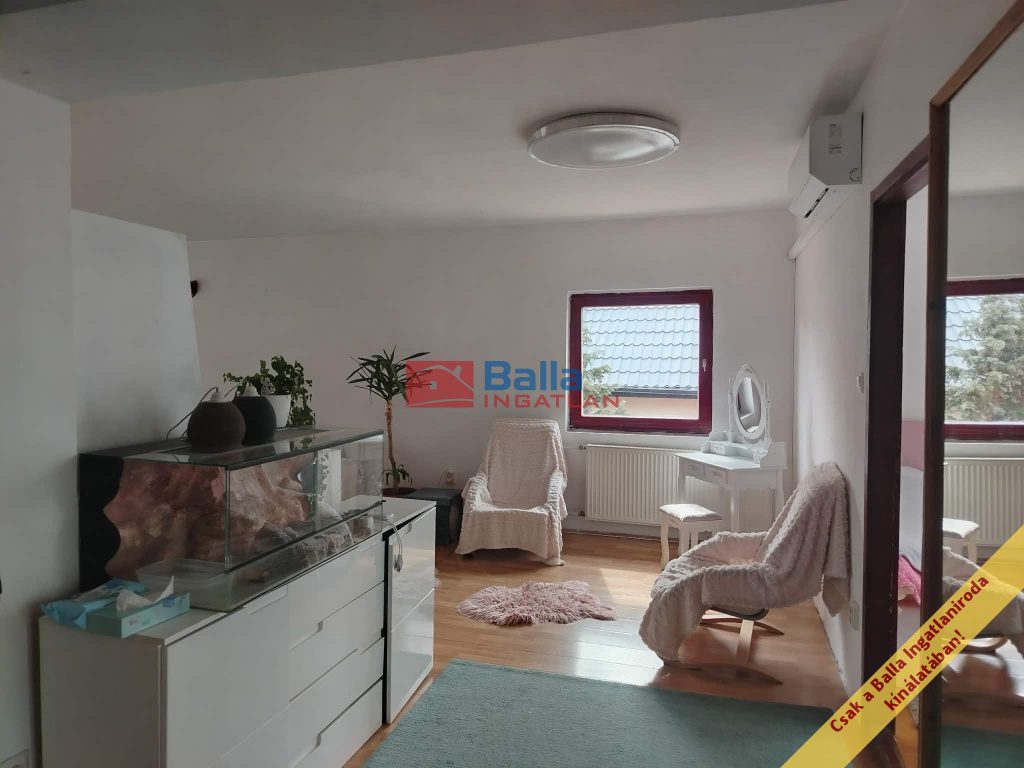 A második lakószinten találunk egy nappalit, két hálószobát, egy fürdőszobát WC-vel és kis hangszigetelt szoba is ki lett alakítva.