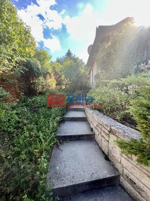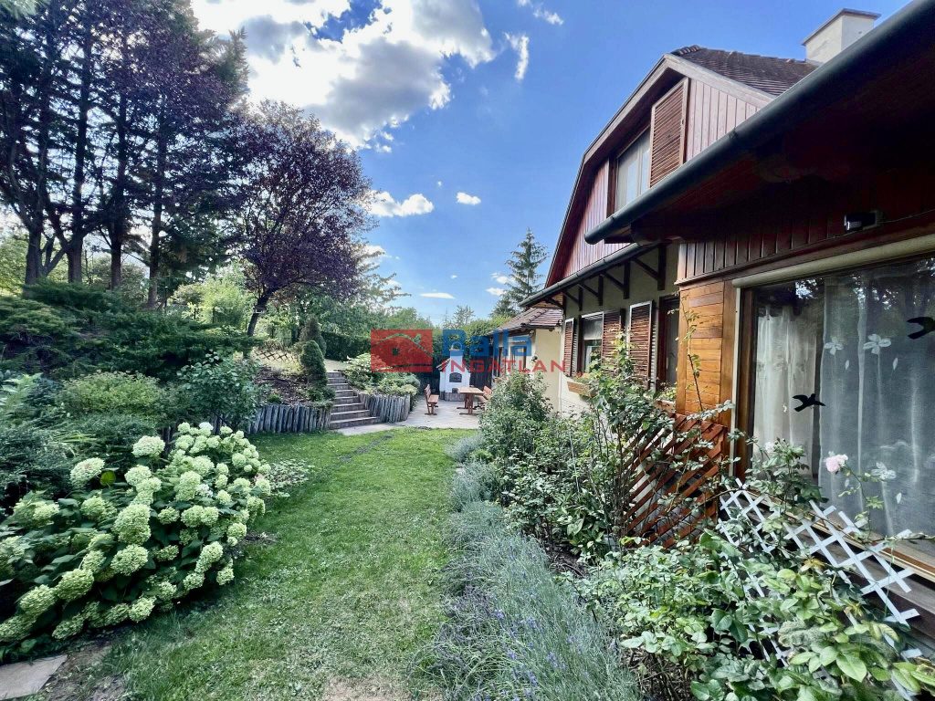 A házat Budakeszin egy gyönyörűen karbantartott, nagy méretű örökzöldekkel telepített, minden igényt kielégítő, enyhén lejtős telken találjuk.