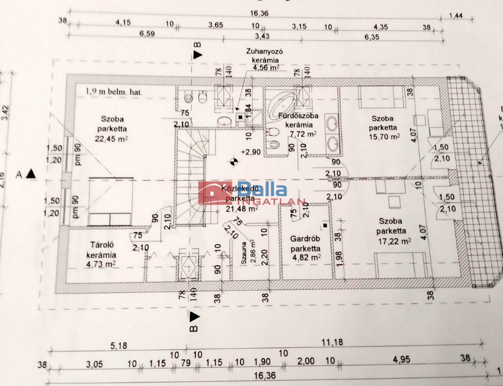 Egyéb tulajdonságok: tehermentes, akadálymentes, lift, külön wc, gardróbszoba, kamra, erkély (10 m²), terasz (20 m²), garázs