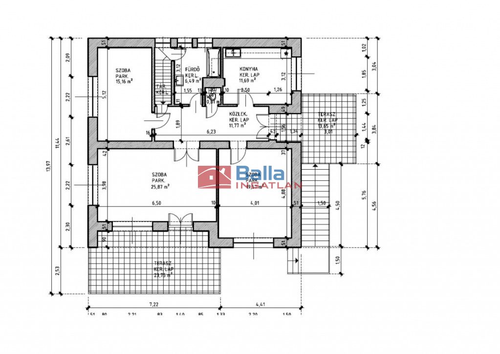 Emeleti lakás: 92 m2