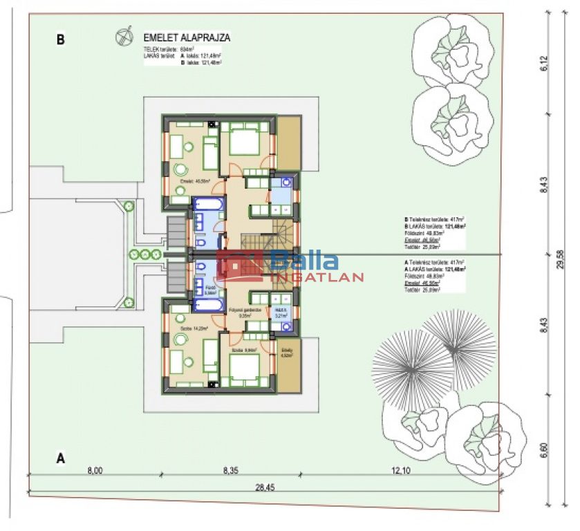 - 3 db hálószoba melyek 14,3 nm, 9,9 nm, 14,8 nm