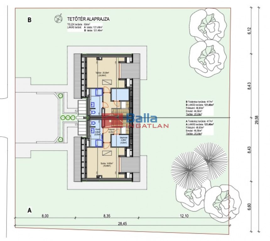 Egyéb tulajdonságok: tehermentes, külön étkező, külön wc, kamra, erkély (4 m²), terasz (10 m²), utcai parkolás
