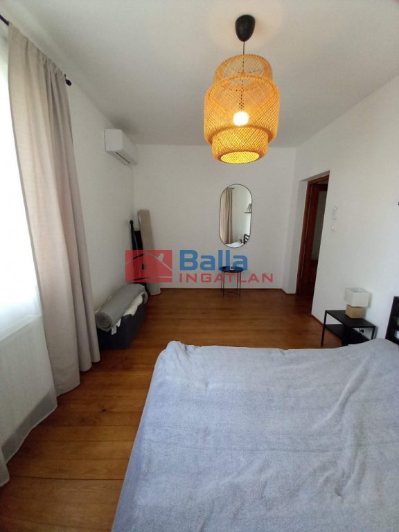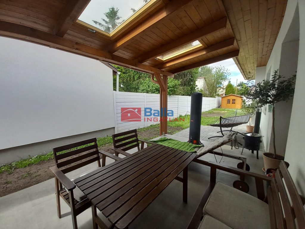 Az ingatlan 1 szintes, felújított, szigetelt 439 m2-es telken helyezkedik el. Minden helyisége ablakos, a szobák külön nyílnak, a ház előtt fedett 16 m2-es terasz. A fűtésről és a meleg vízről gáz cirkó kazán gondoskodik. A fürdőszoba kádas, a WC külön helyiségben van. Részben bútorozott, igény szerint üresen is kiadó.