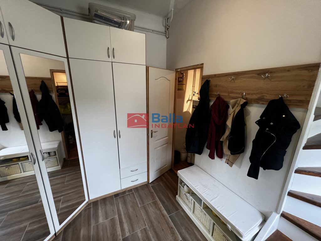 A lakásba a saját használatú kertből, külön kapun keresztül lehet bejutni. Kétszintes kialakítású: