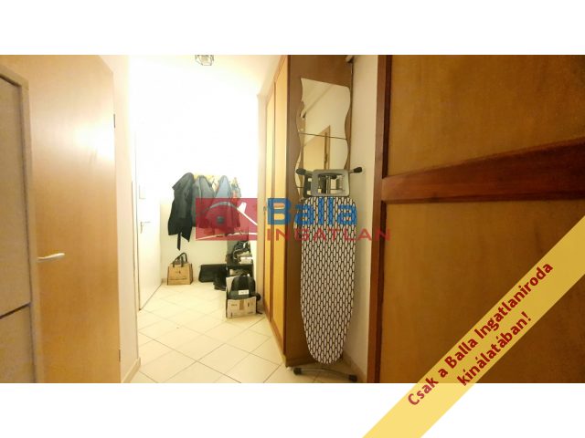 Upon entering the apartment, all rooms open from the hallway. We go straight through to the living room with a loggia where there is a fully equipped kitchen and a dining room. The apartment is facing east, the sun rises here, and there is a view of Aranyhegy.