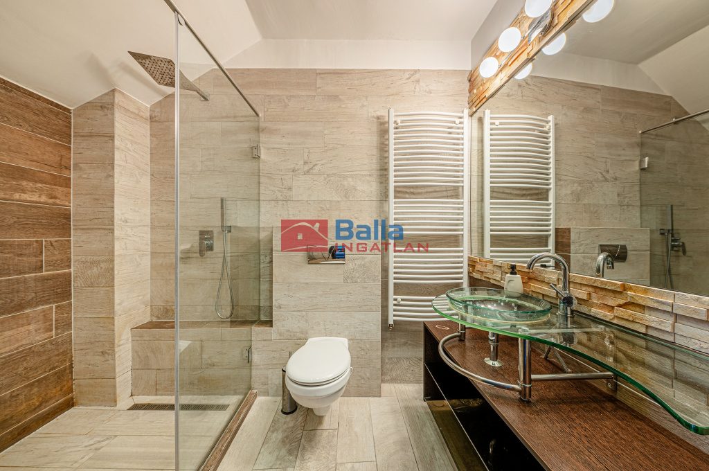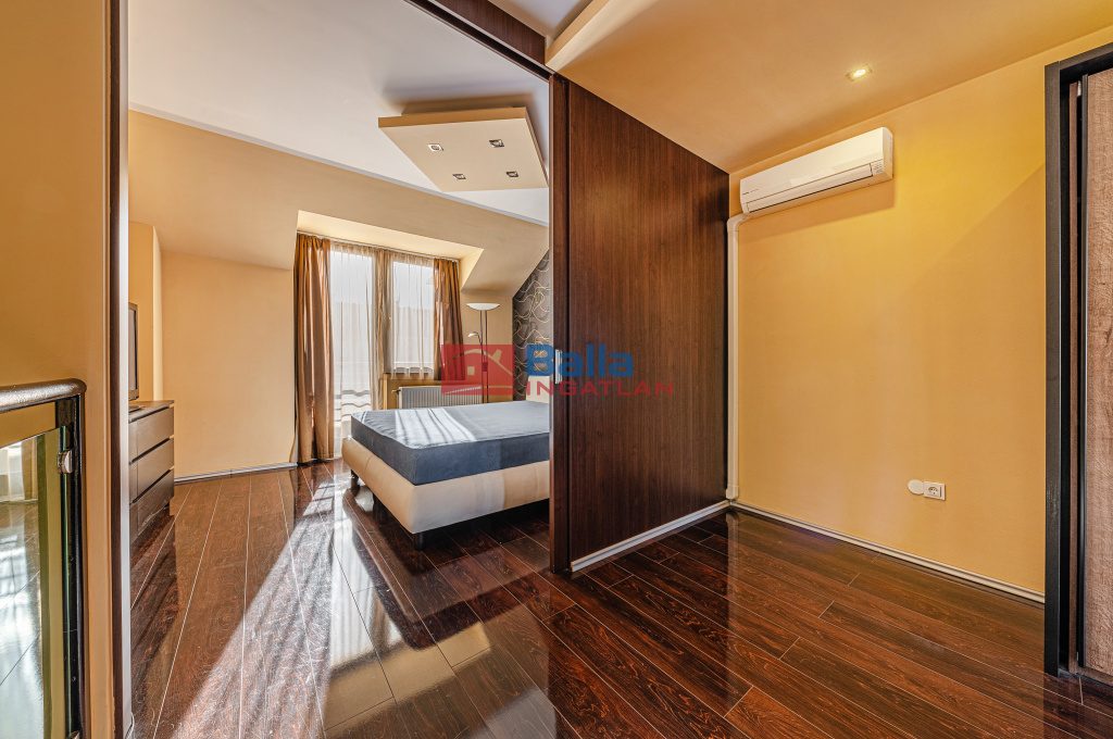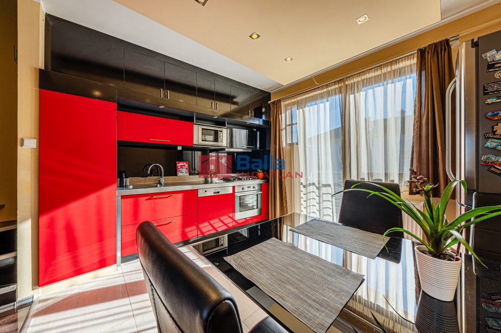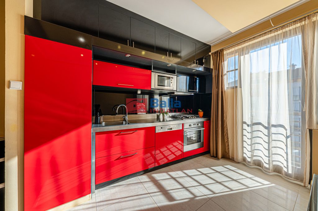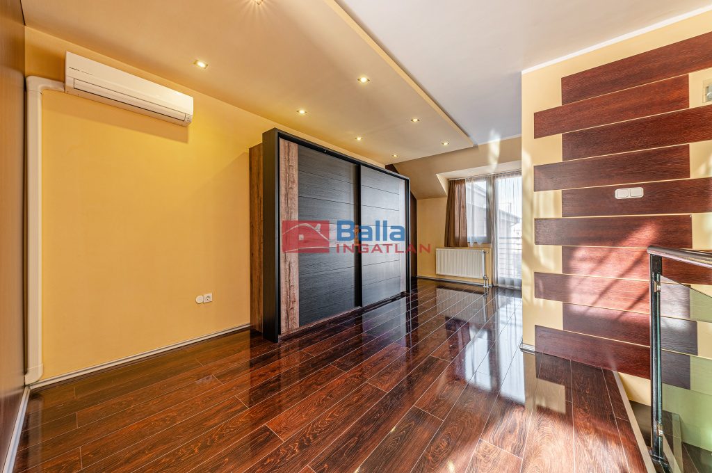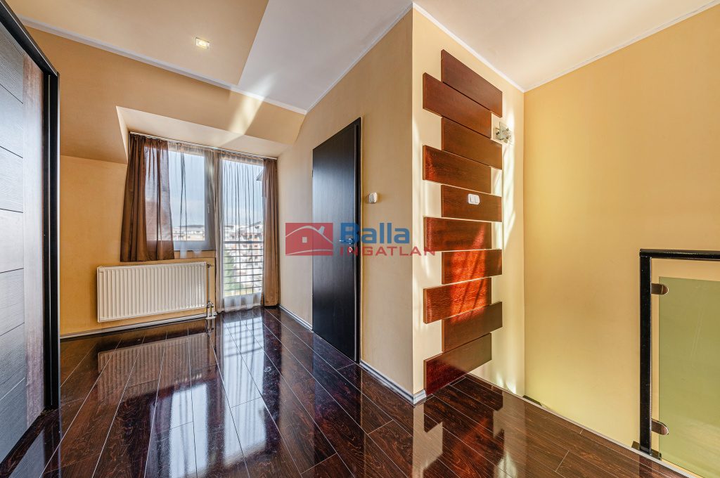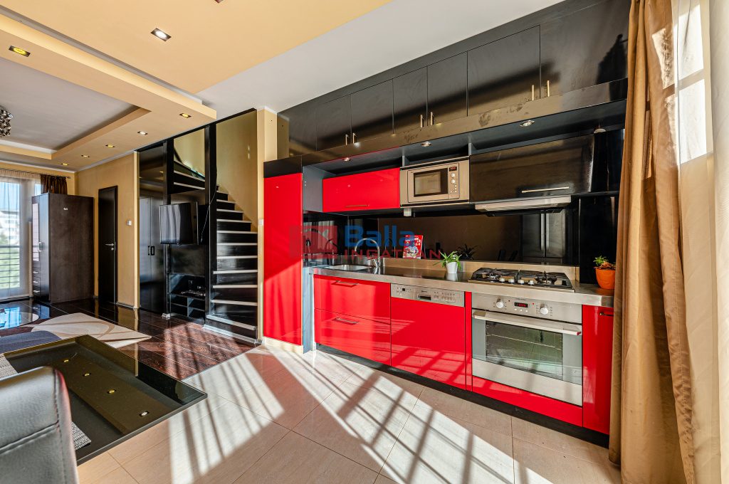 A lakás alsó szintjén egy tágas, amerikai konyhás nappali kapott helyet, amely tökéletes közösségi térként funkcionál, valamint egy különálló mellékhelyiség és egy praktikus tároló is megtalálható ezen a szinten. A felső emeleten egy kényelmes hálószoba, egy világos és nagy méretű dolgozószoba, valamint egy zuhanyzós fürdőszoba beépített szekrényekkel szolgálja a lakók kényelmét. Az emeleten igény esetén könnyedén kialakítható még egy szoba, így a lakás akár két külön hálószobát is biztosíthat új tulajdonosa számára.