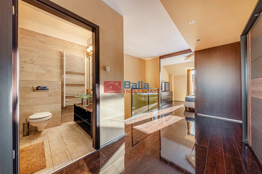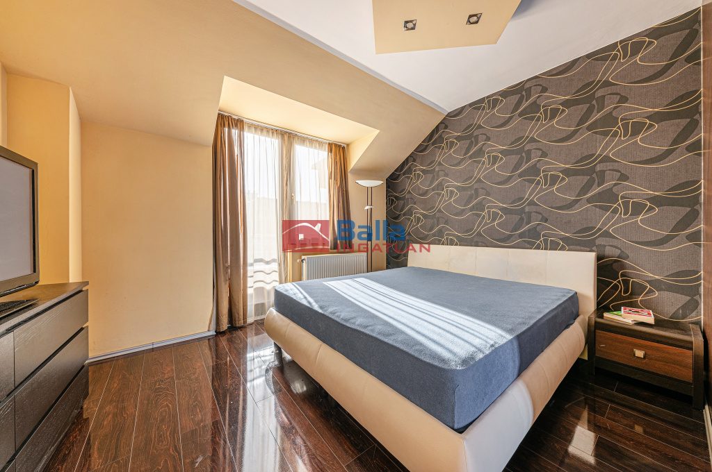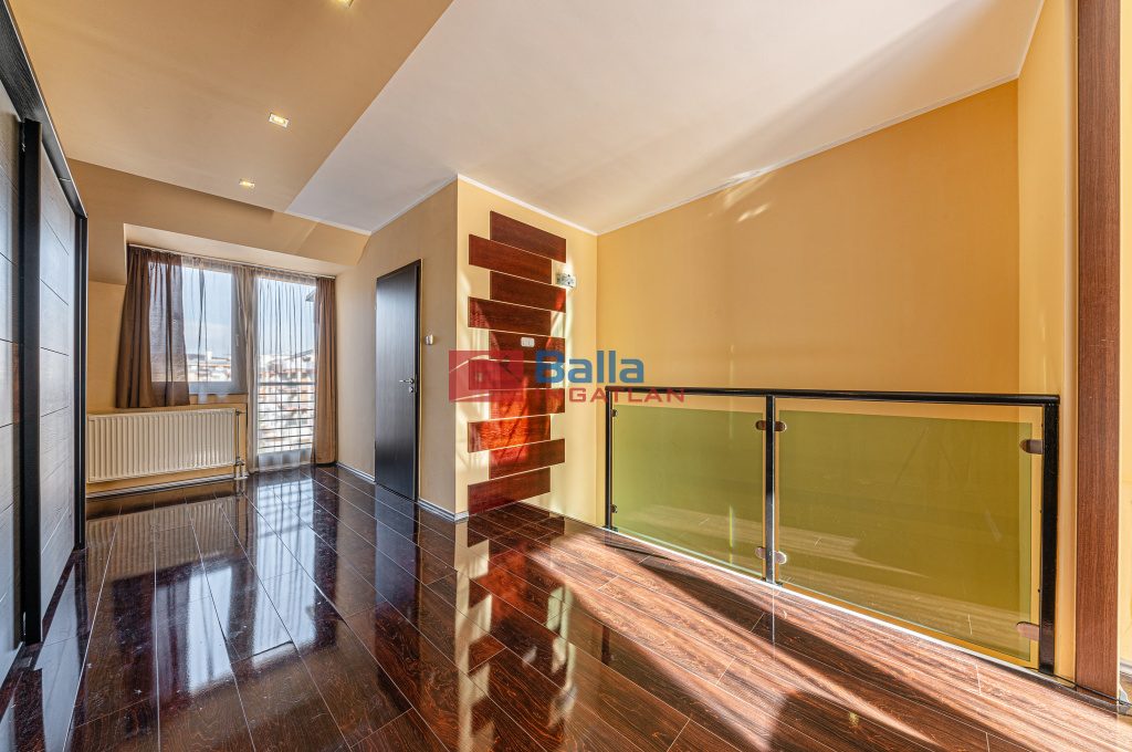 Mindkét szinten két-két franciaerkély nyit lehetőséget a természetes fény beáramlására és a kellemes kilátás élvezetére. A lakás belsőépítész által megálmodott, modern és fiatalos stílusban került kialakításra, különleges, egyedi megoldásokkal, így az új tulajdonos egy igazán karakteres és azonnal költözhető otthonba érkezhet.