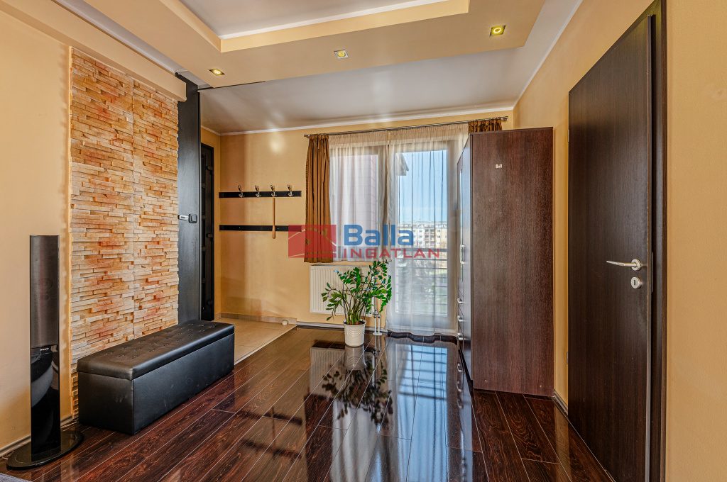 Az ingatlan egy 2004-ben épült, lifttel felszerelt, négyemeletes társasház harmadik emeletén helyezkedik el, és egy jól karbantartott, biztonságos lakópark része, ahol a gondozott belső kertet kertész ápolja, valamint egy modern játszótér is kialakításra került a gyermekes családok örömére.