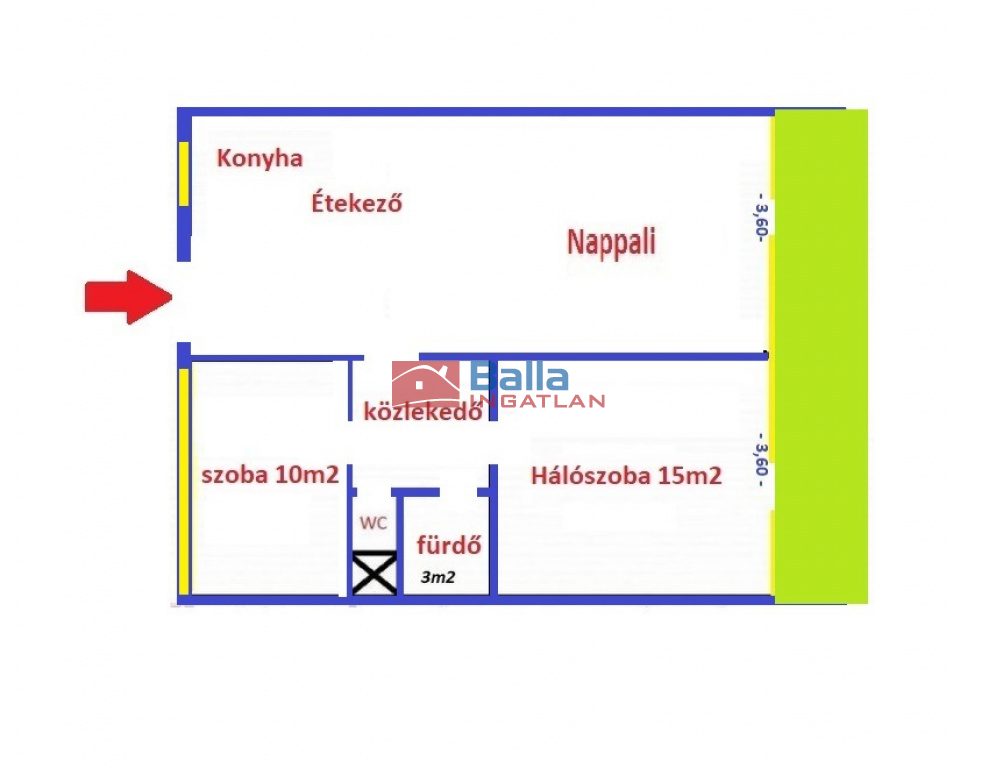 Egyéb tulajdonságok: külön wc, erkély (9 m²), utcai parkolás