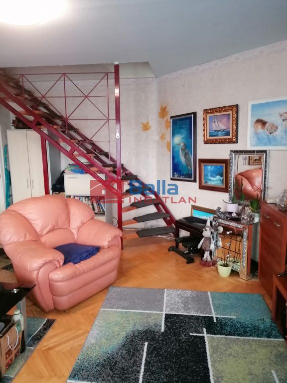 Eladó Budapest IV. kerület Káposztásmegyer I. városrészen a Dunakeszi utcában egy 4. emeleti plusz tetőtéri lakás 106 m2 összterülettel. A tetőtéri bővítés miatt a lakás hasznos alapterülete 88 m2. A lakáshoz még tartozik egy 4,5 m2 – es erkély is, mely a hálószobából közelíthető meg. A társasház 1988 – ban épült, panel szerkezetű, magastetős, cserép fedéssel, és 4 emeletes.