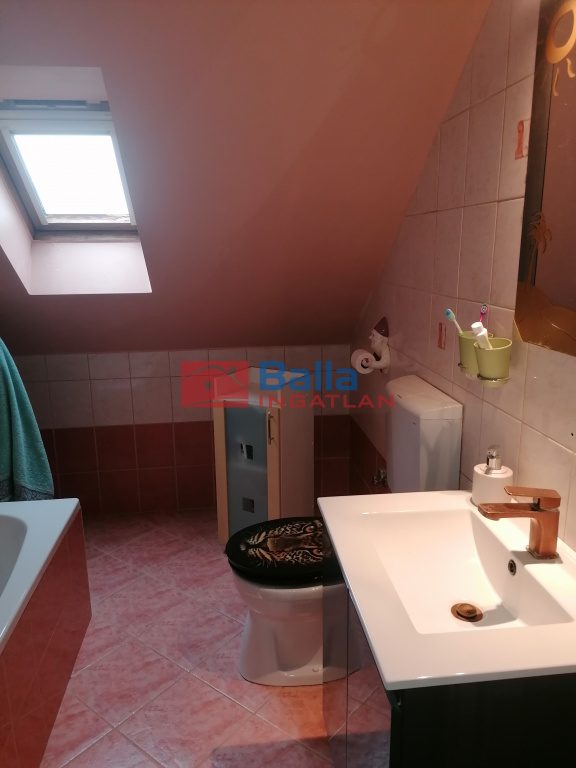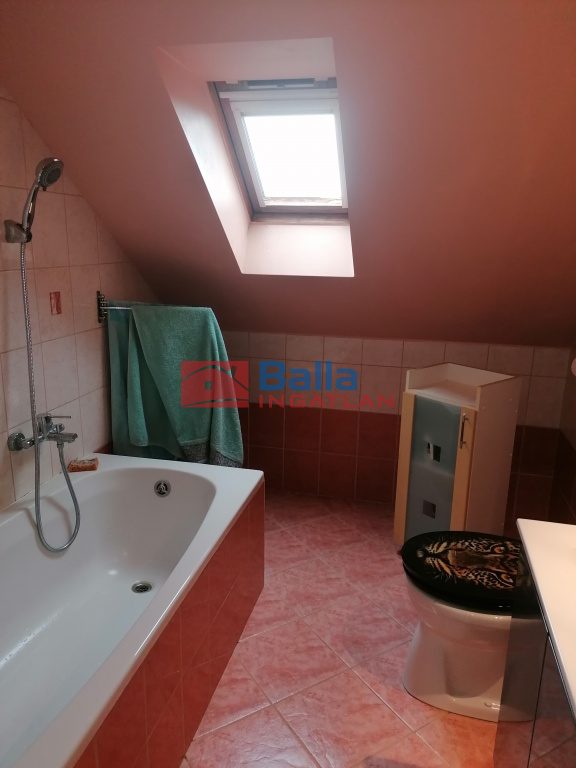 A helyiségek: 4 szoba, két fürdőszoba, külön WC, konyha, előtér, közlekedő és belső lépcső. A helyiségek burkolata kerámia és laminált padló.