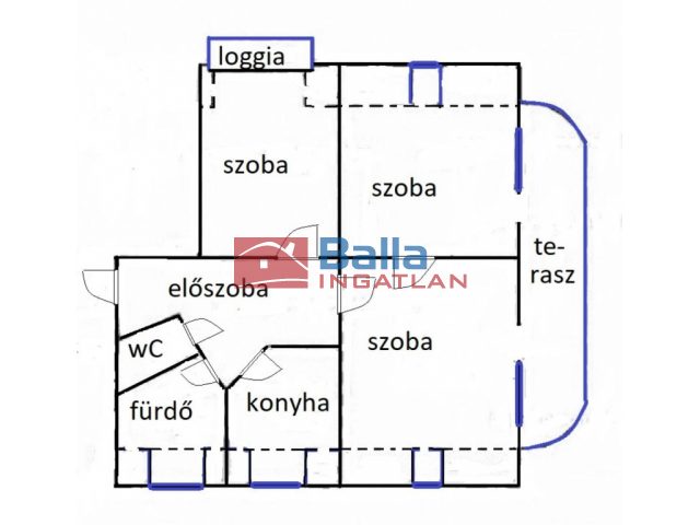 Egyéb tulajdonságok: tehermentes, külön wc, loggia (2 m²), terasz (12 m²), utcai parkolás