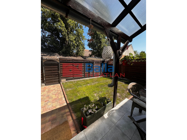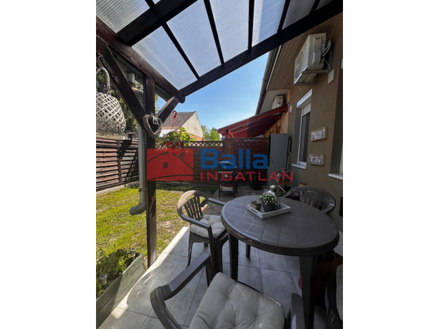 Saját lekerített kert (kb 50 m2), melynek része a 14 m2-es fedett terasz. A lakáshoz tartozik még egy 8 m2-es tároló.