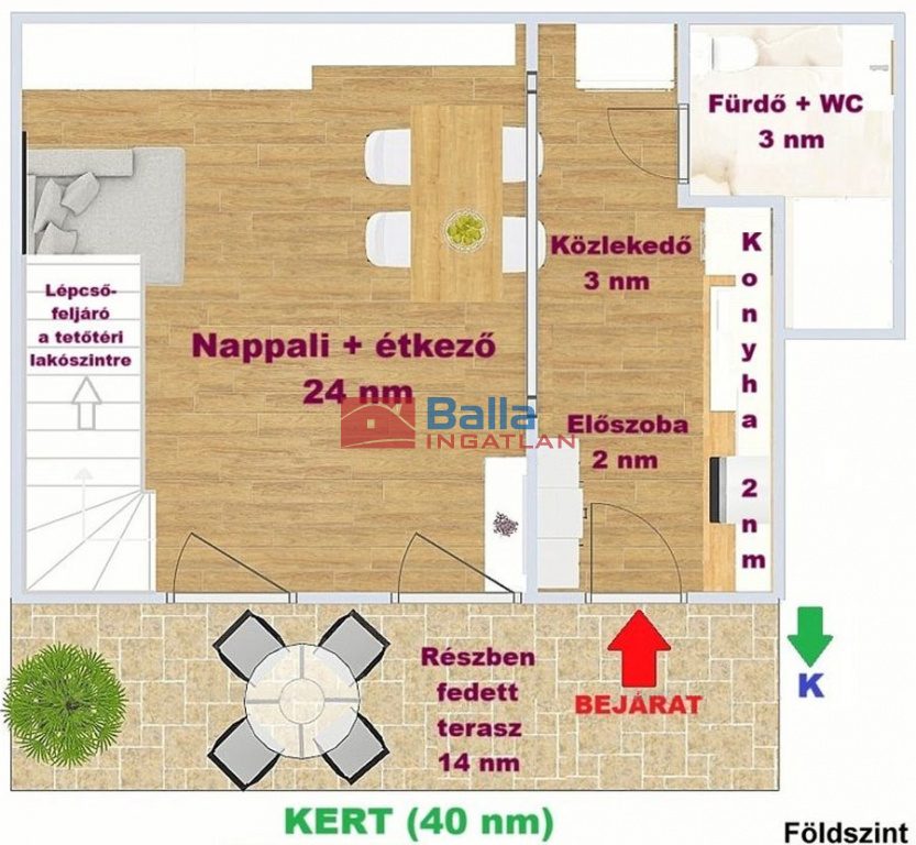 Egyéb tulajdonságok: tehermentes, fan-coil, terasz (14 m²), utcai parkolás