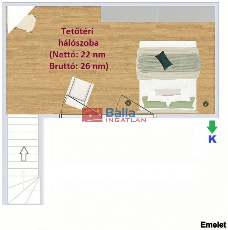 Környezet: Kellemes kertvárosias környezet, jó közlekedéssel, családi házakkal.