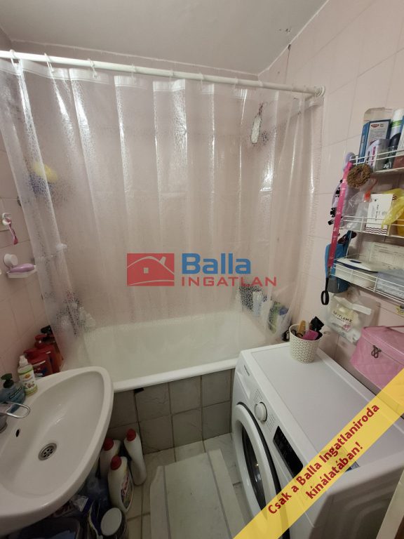 Az ingatlanban külön WC és kádas fürdőszoba található, illetve a közlekedőn rengeteg pakolási lehetőség van a beépített szekrényeknek köszönhetően.
