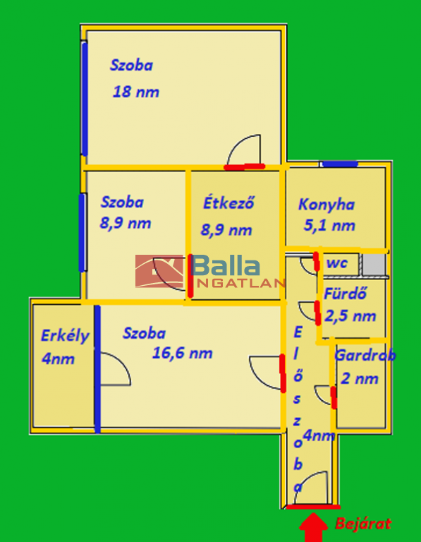 Egyéb tulajdonságok: tehermentes, azonnal költözhető, akadálymentes, lift (1 db), külön étkező, külön wc, gardróbszoba, erkély (4 m²), utcai parkolás