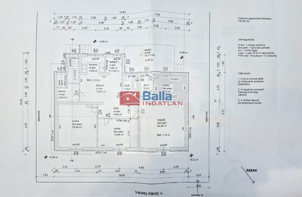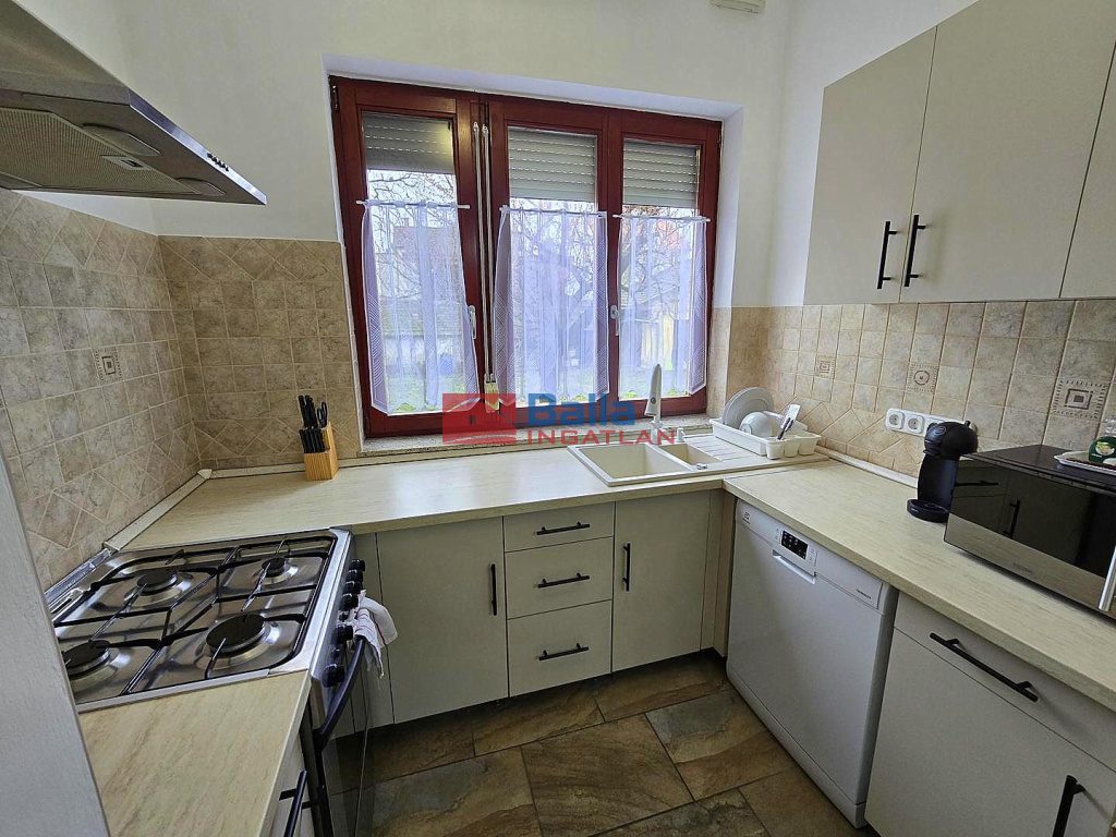 Egyéb tulajdonságok: külön étkező, kamra, erkély (12 m²), terasz, pince, garázs, utcai parkolás