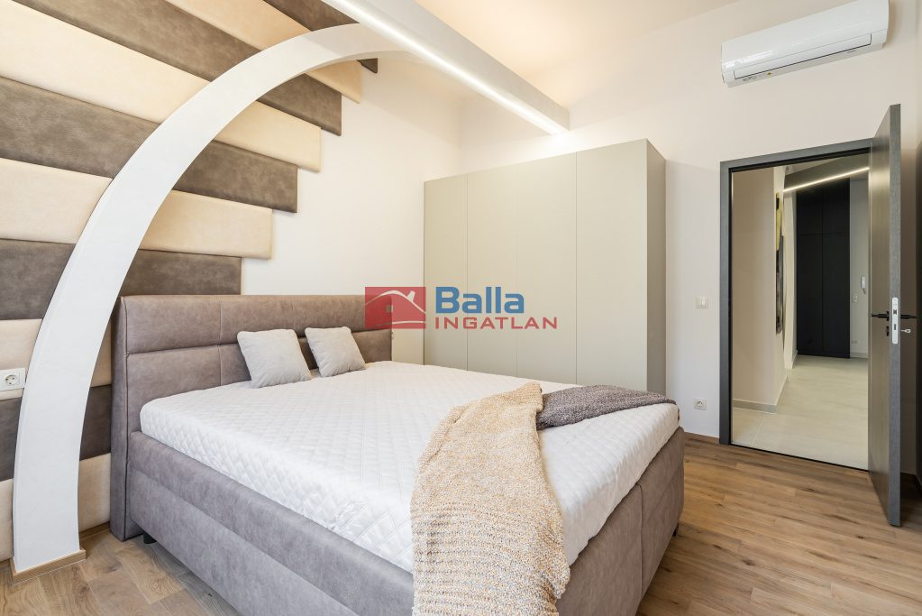 A lakás teljes bútorzata – egyedileg tervezett és kivitelezett darabok – az ár részét képezi.