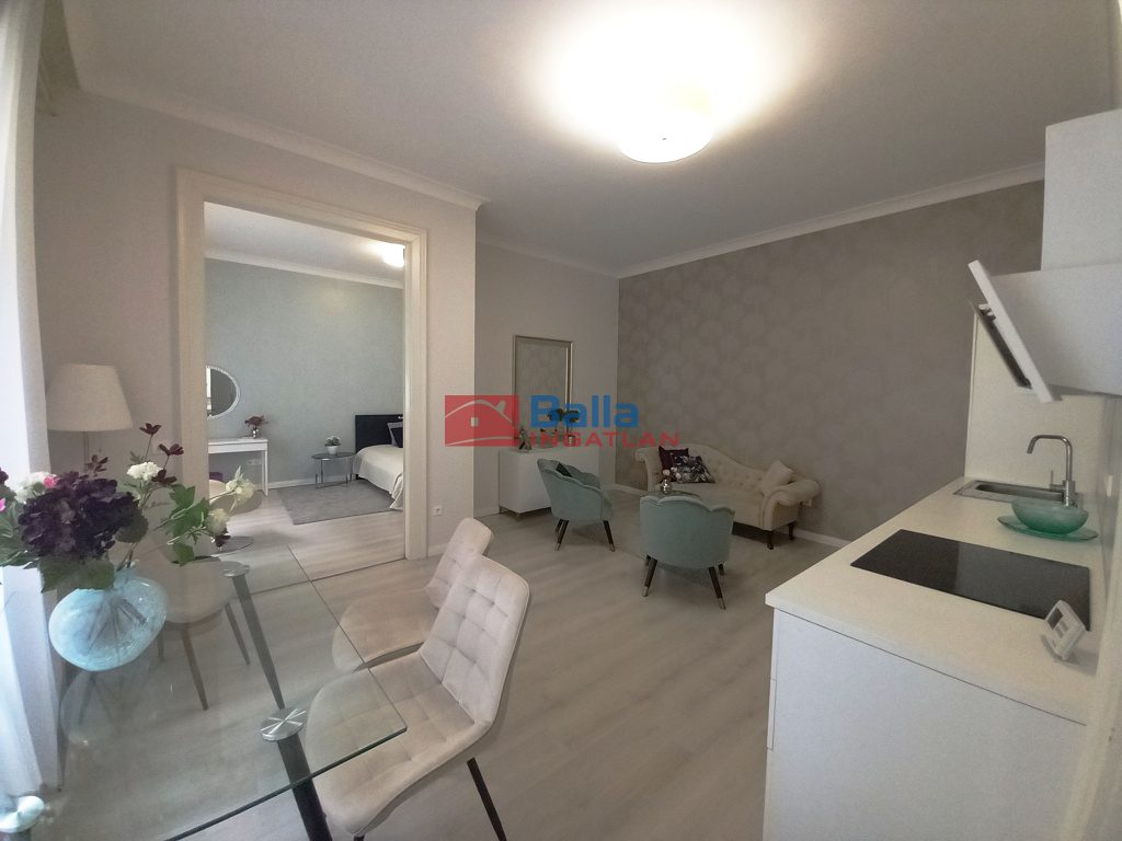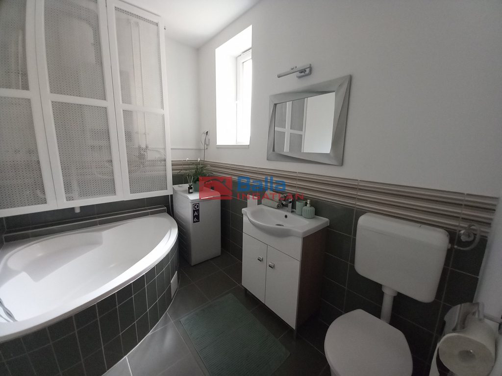 A felújítás nem csak ESZTÉTIKAILAG, MŰSZAKILAG is megtörtént, kitűnő minőségi hideg-meleg burkolatok, szaniterek kerültek beépítésre. Két fürdőszoba lett kialakítva, az egyik káddal felszerelt, a másik zuhanykabinos. A konyha modern, minden igény kielégít, magas minőségű gépekkel felszerelt.