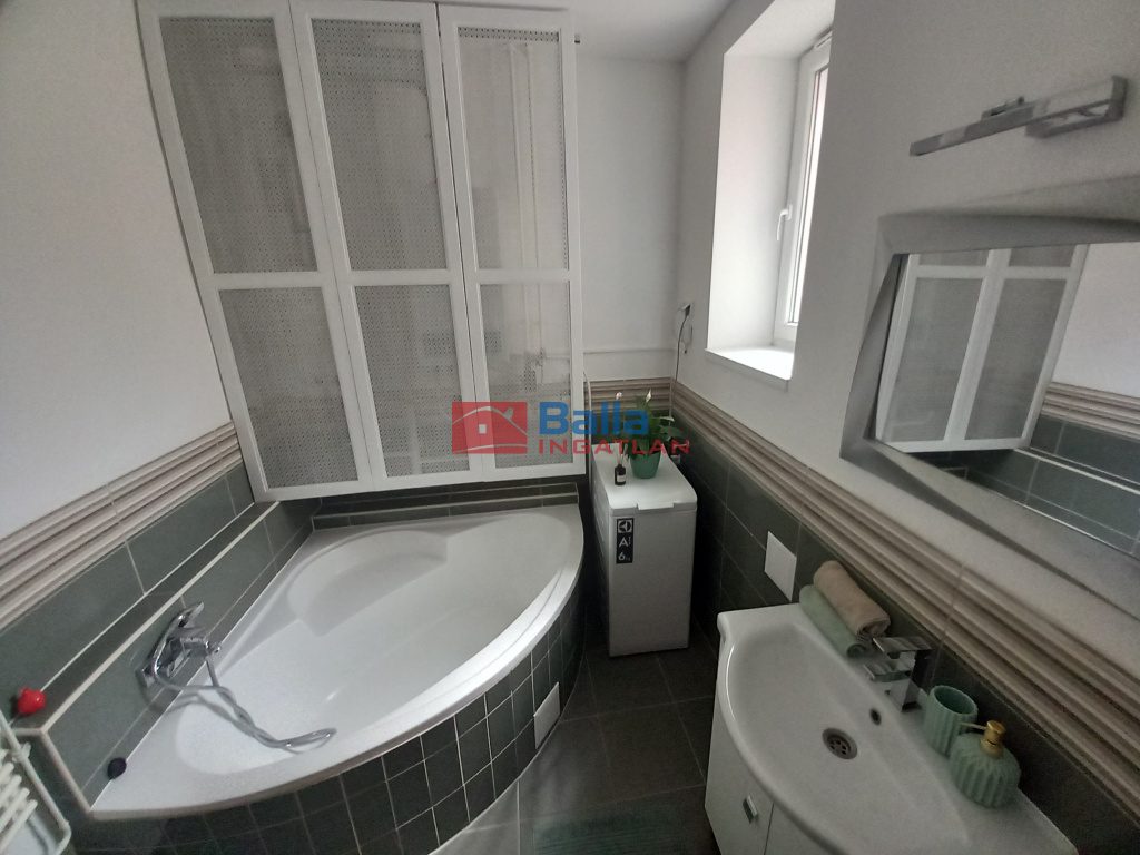 A felújítás nem csak ESZTÉTIKAILAG, MŰSZAKILAG is megtörtént, kitűnő minőségi hideg-meleg burkolatok, szaniterek kerültek beépítésre. Két fürdőszoba lett kialakítva, az egyik káddal felszerelt, a másik zuhanykabinos. A konyha modern, minden igény kielégít, magas minőségű gépekkel felszerelt.