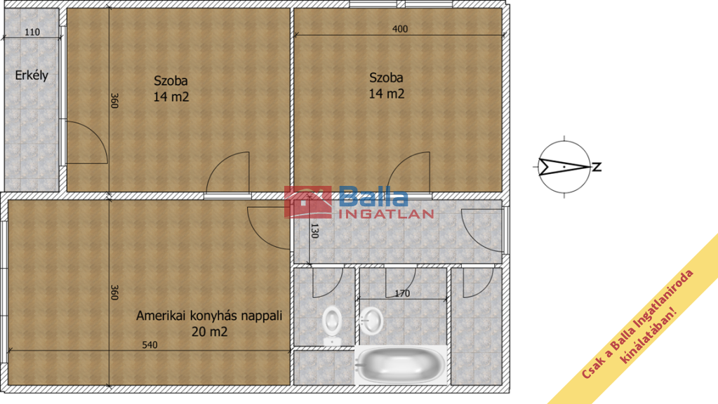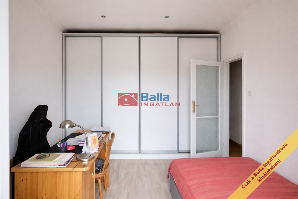 A beosztása kiváló: Az amerikai konyhás nappali a lakás éke: A konyhaszekrény egyedi rendelésre készült, a beépített gépekkel együtt a vételár részét képezi. Innen nyílik az egyik hálószoba, ahonnan kilépve az erkélyre, pazar kilátás nyílik a kiserdőre és a távoli Wekerlére. A két hálószoba külön bejártú. A WC és a fürdő külön helyiségben kapott helyet. Ezen kívül egy kamra vagy gardrób is a leendő tulajdonos kényelmét szolgálja.