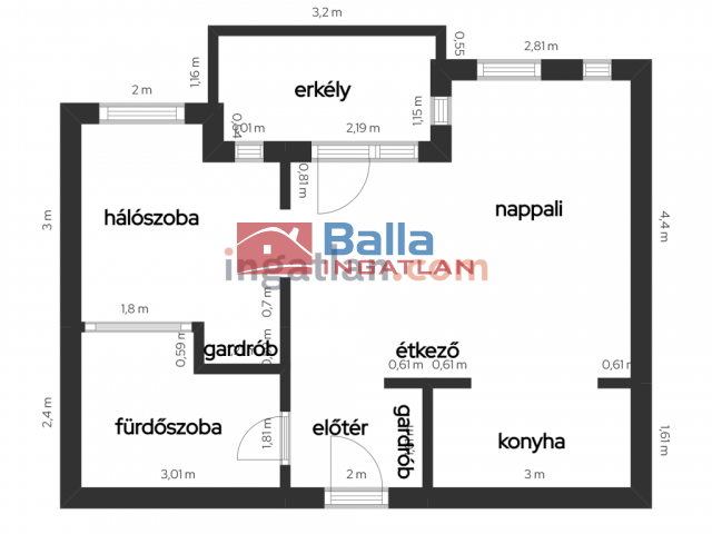 Egyéb tulajdonságok: azonnal költözhető, lift (1 db), erkély (4 m²), utcai parkolás
