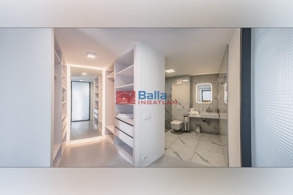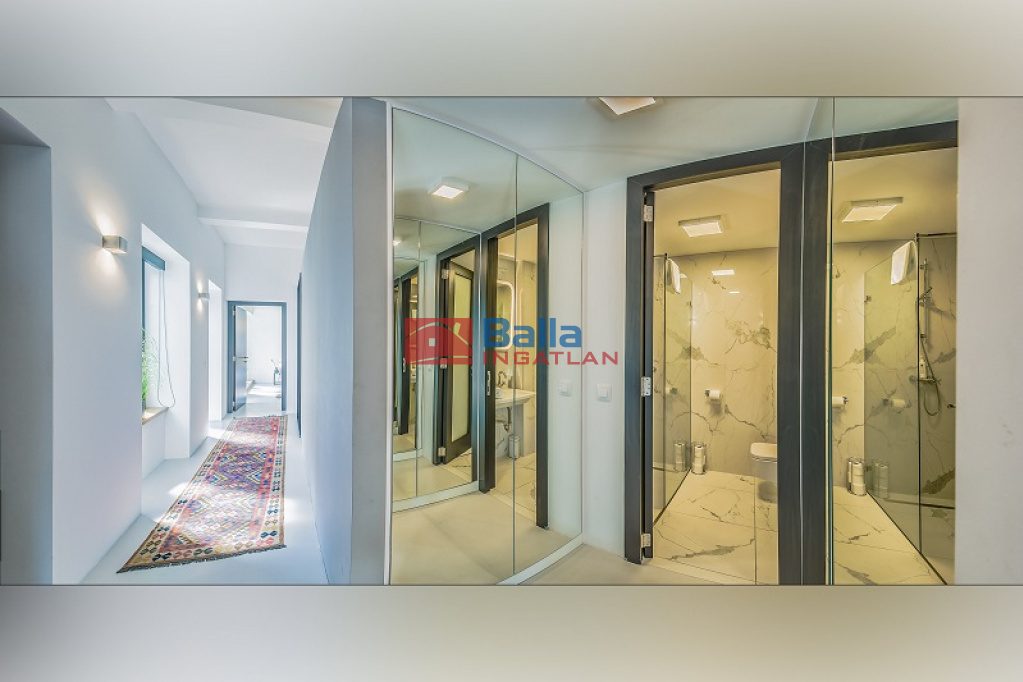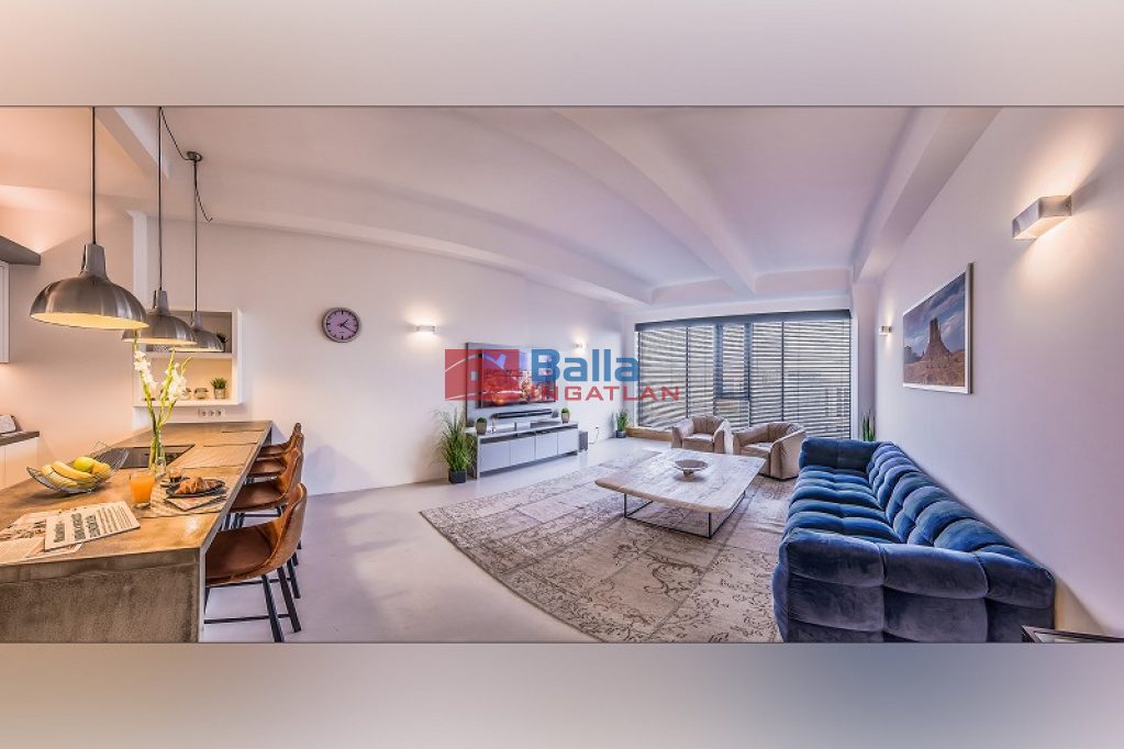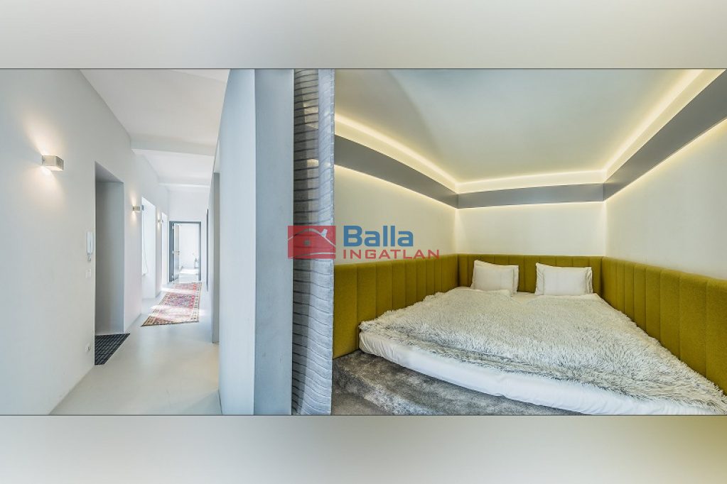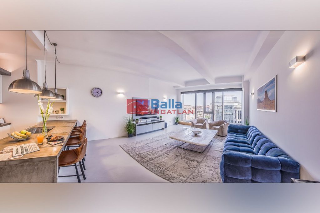Az eladó ingatlan egy hatalmas nappali, konyhából, két tágas fürdőszobából walk-in zuhanyzóval és gardróbbal, egy hálófülkéből, valamit nagy méretű hálószobából áll, amelyből kijuthatunk a 42 m2-es teraszra, ahonnan csodálhatjuk a Gellért-hegyet. A lakás különlegessége a közel 5 méteres faltól-falig húzódó ablak, ahonnan a belvárosra láthatunk rá, a hatalmas belső terek és az osztott, fémkeretes ablakok, ajtók, amelyekkel elválasztják ezt a teret.