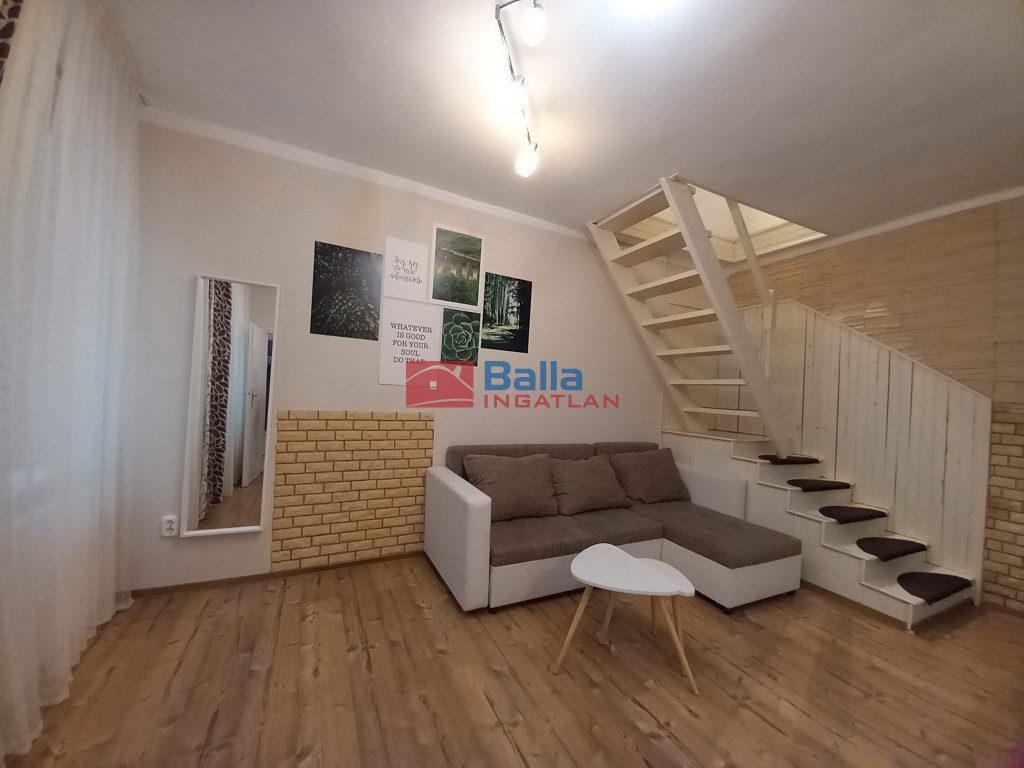 Az ingatlan alapterülete 29 m2, azonban a nagy belmagasságnak köszönhetően két szintet alakítottak ki, így alul tágas, világos nappali, felszerelt konyha, és kádas fürdőszoba található, míg a teljes értékű felső szinten hálószoba és gardrób.