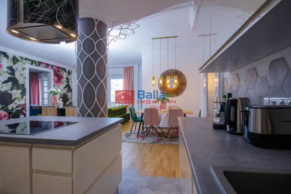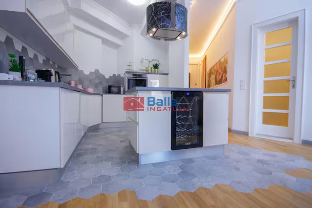 Igényesen berendezett 110 nm-es, ERKÉLYES. Tágas amerikai konyhás nappaliból 3 külön bejáratú, fürdőszobás háló nyílik.