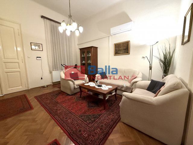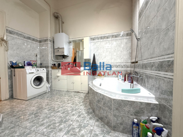 Eladásra kínálok egy 97 m2 alapterületű nagypolgári három szobás társas házi lakást. A nappali 23 m2 alapterületű, udvarra néző ablakos, légkondicionált, innen nyílik a 25 m2 alapterületű utcára nyíló ablakos szoba, ami a hálószobából is megközelíthető. A hálószoba 16,5 m2 alapterületű, utcára néző ablakos. A lakás körbe járható, külön és egybe nyíló szobákkal. A konyha udvarra néző ablakos, beépített konyha bútorral,villany tűzhellyel és gáz főző lappal,szag-pára elszívóval az étkező is kényelmesen elfér mellette. A konyhából nyílik egy tároló helység és a kamra. A fürdőszoba 8 m2 alapterületű sarokkádas, mosdóval és zuhanykabinnal, a toalett innen nyíló külön ablakos helységben kapott helyet. A meleg vízről és az otthon melegéről gáz cirkó gondoskodik, vízórával felszerelt lakás.