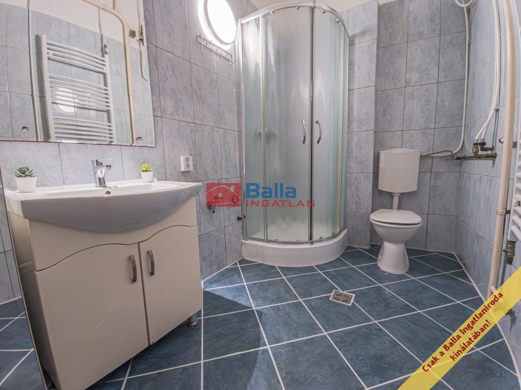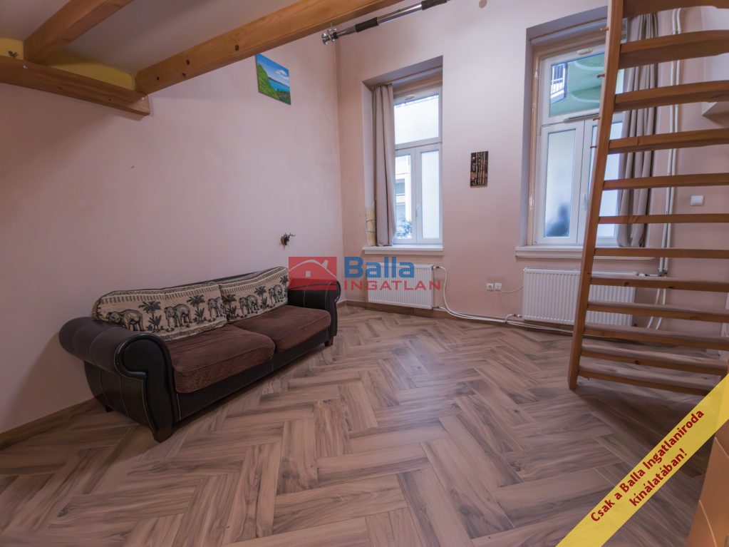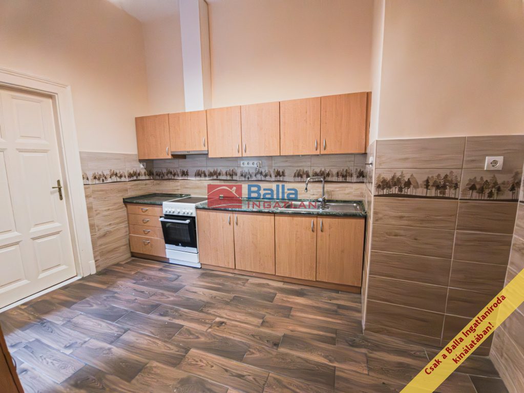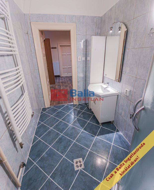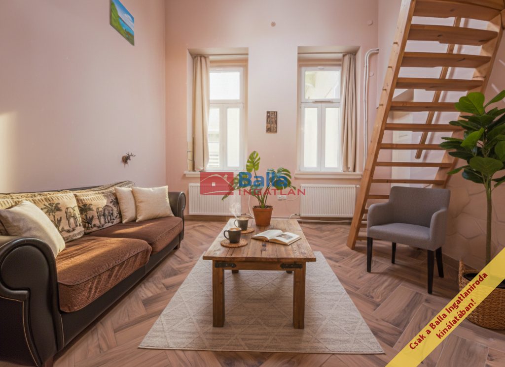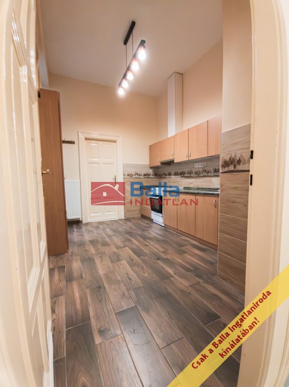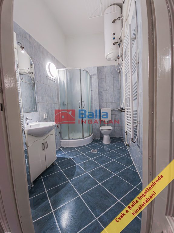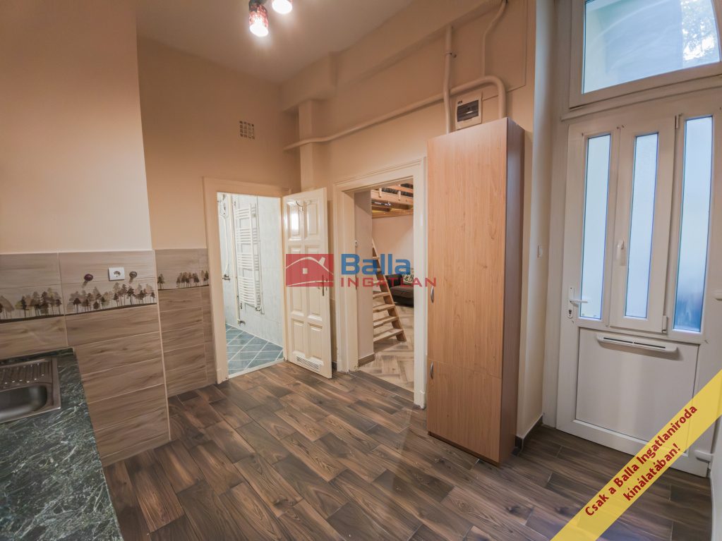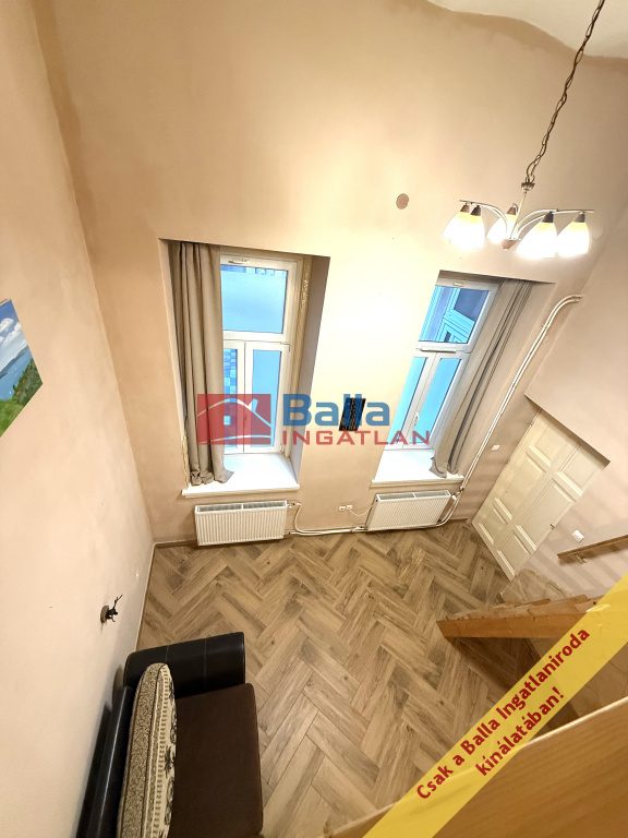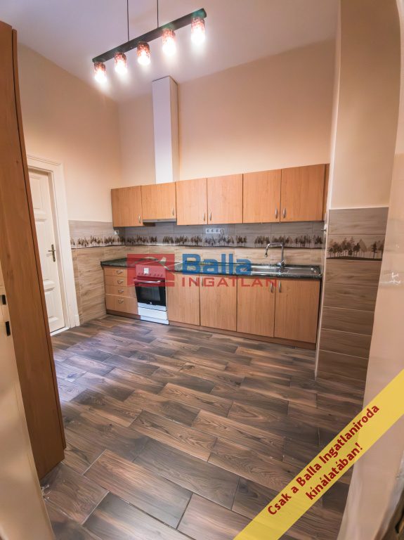 A lakásba lépve a konyhabútorral, elektromos sütővel, főzőlappal felszerelt tágas konyhába érkezünk. Innen nyílik minden helység, a szobák külön nyílóak, udvarra néző ablakosak, a 18,5 m2 szoba déli tájolású, járólappal burkolt, 8 m2 alapterületű álló galériával. A másik szoba a bejárattól balra helyezkedik el, keleti tájolású, laminált parkettával burkolva, 6 m2 alapterületű álló galériával. A 466 cm-es belmagasságnak köszönhetően a galériákkal a lakás összesen közel 60 m² életteret kínál. A fürdőszoba mosdóval, zuhanykabinnal, törölköző szárítóval felszerelt, a toalettel egy helységben kapott helyet. Az otthon melegéről és a meleg vízről MIKA 6E parapetes kombi kazán gondoskodik radiátorral, 120 literes indirekt tárolóval a melegvízhez, vízórával felszerelt lakás. A lakás felújításon esett át, megtörtént a falnedvesség megszüntetése injektálással + légpórus vakolattal (VIP-REX UNI), 2 rétegű műanyag nyílászárók kerültek a régiek helyére, új szanitereket, burkolatot, külső-belső festés kapott.