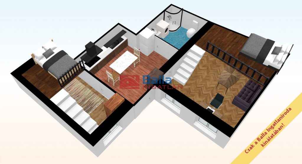Eladásra kínálok egy felújított, 44 m2 alapterületű, galériázott két szobás csendes társasházi lakást.