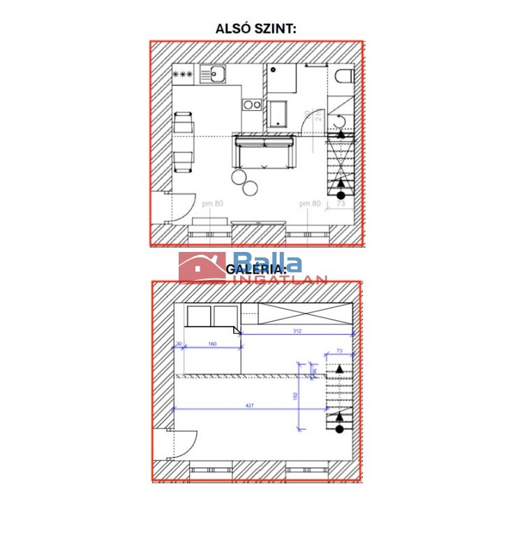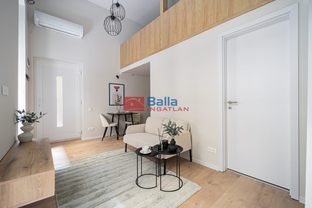 Az ingatlan egy hangulatos 32 nm-es állógalériás (22 nm + 10 nm állógaléria) garzon. A lakás egy nagyobb ingatlanból van leválasztva, a használat jogilag ügyvédi megosztással van rendezve.