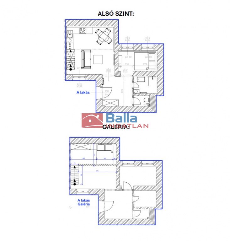 Az ingatlan 2 szobás, hangulatos 49 nm-es állógalériás (39 nm + 10 nm állógaléria). A lakás egy nagyobb ingatlanból van leválasztva, a használat jogilag ügyvédi megosztással van rendezve.