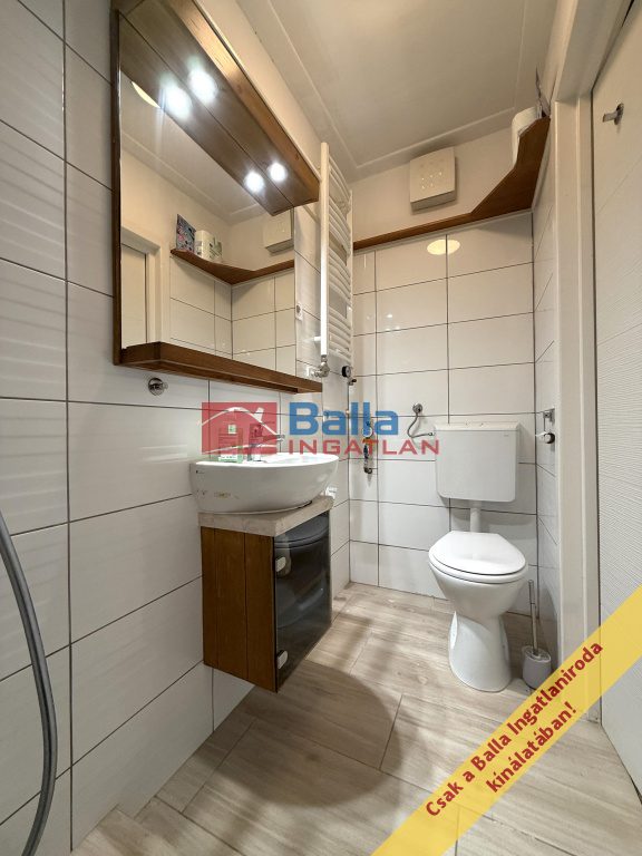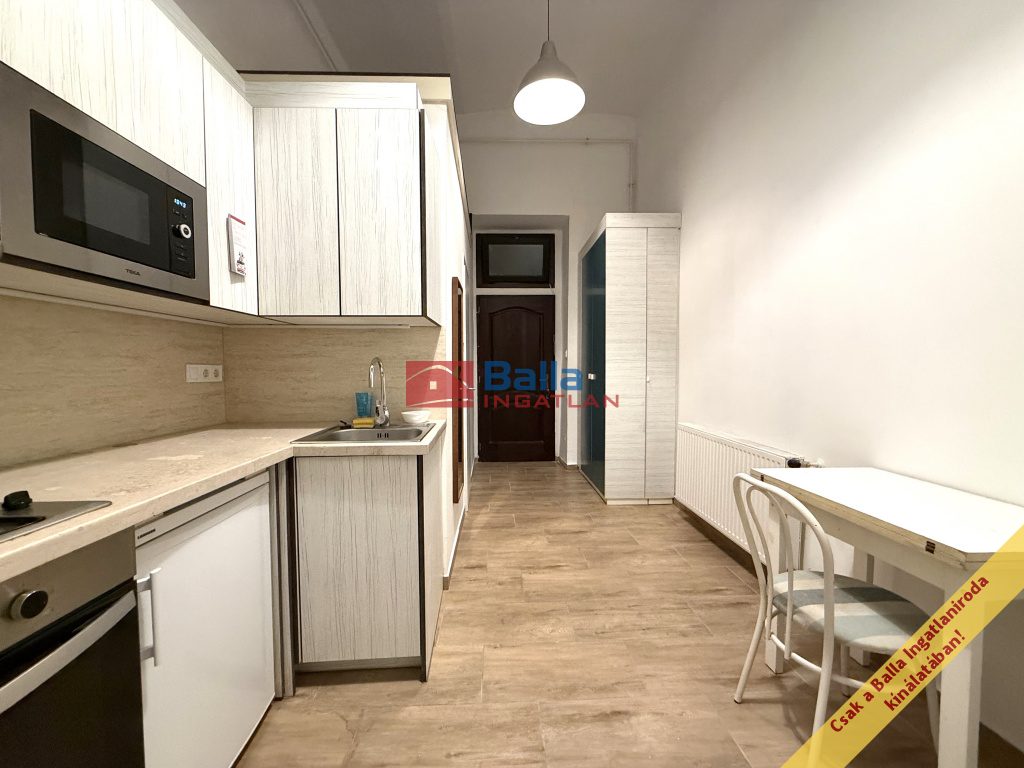 Eladóvá vált egy 27 m2 alapterületű tégla építésű felújított, álló galériás garzon lakás. A lakásba lépve egy előtérbe érkezünk, innen nyílik a mosdóval, zuhannyal felszerelt fürdőszoba, ami a toalettel egy helyégben kapott helyet, a szellőzés elektromos szellőztetővel megoldott. A konyha beépített konyha bútorral, beépített elektromos sütővel, gáz főzőlappal, mikrohullámú sütővel és hűtővel felszerelt. A szoba világos, 14 m2 alapterületű, utcára néző ablakos, 6 m2 álló galériával, egyedi készítésű tároló szekrénnyel. A fűtés gázkonvektorral, a meleg víz villany bojlerrel megoldott, víz órával felszerelt lakás. A lakás teljes körű felújításon esett át, felújításra került az elektromos vezeték, víz-csatorna hálózat, fűtés, új burkolatot, szanitereket, konyha bútort, konyha gépesítést kapott.