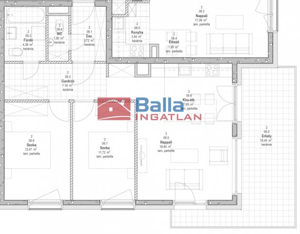 Egyéb tulajdonságok: tehermentes, akadálymentes, lift, fan-coil, külön wc, erkély (18 m²), garázs