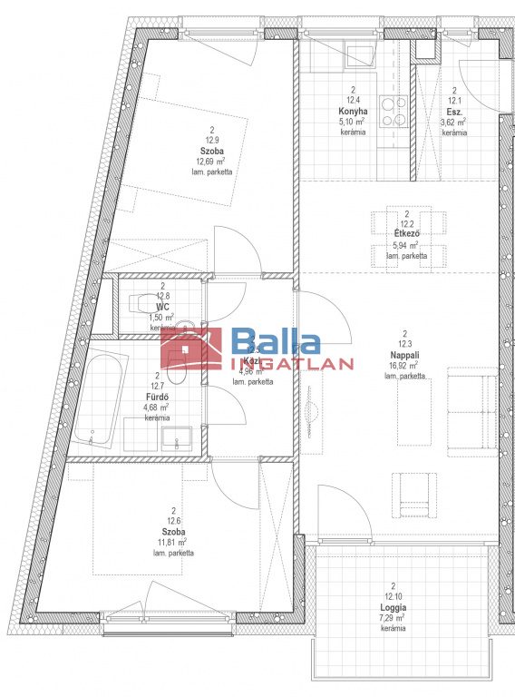 319 lakás - 67,22 nm + 7,29 nm erkély.