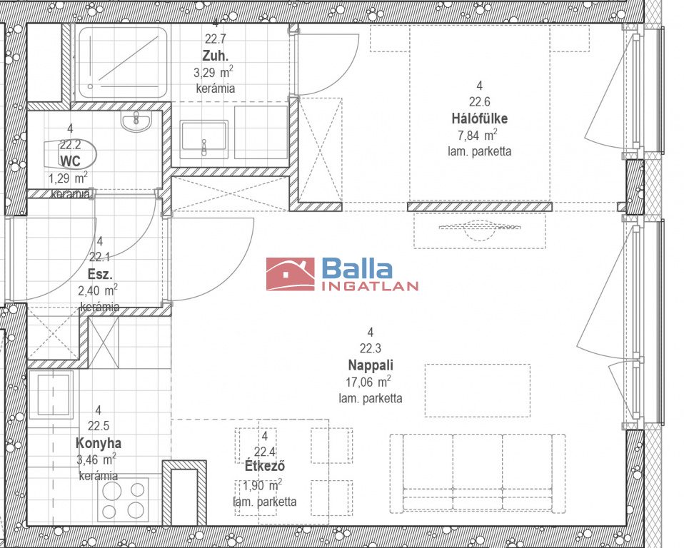 422 lakás - 37,24 nm erkély nélkül.