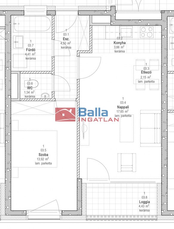 103 lakás - 47,83 nm + 4,43 nm loggia