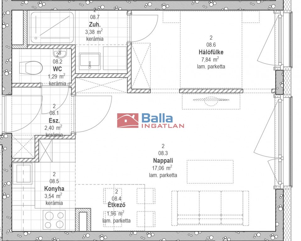 30 lakás és egy üzlet kerül kialakításra, melyekhez 32 db parkolóhely kapcsolódik.