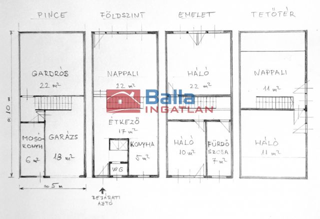 Egyéb tulajdonságok: tehermentes, külön wc, francia erkély, terasz (12 m²), pince, garázs, zárt autóbeálló