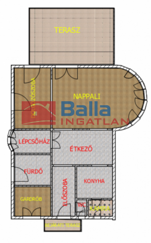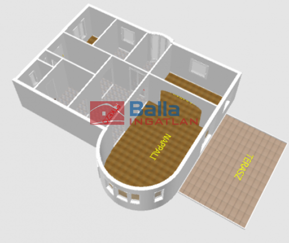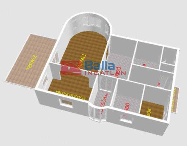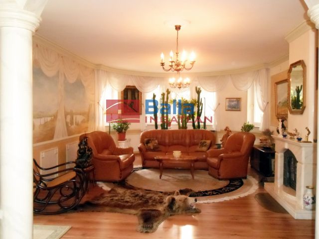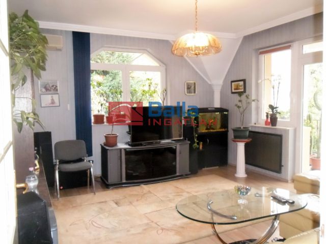 Egyéb tulajdonságok: külön étkező, külön wc, gardróbszoba, kamra, erkély (14 m²), terasz (60 m²), pince, garázs, zárt autóbeálló