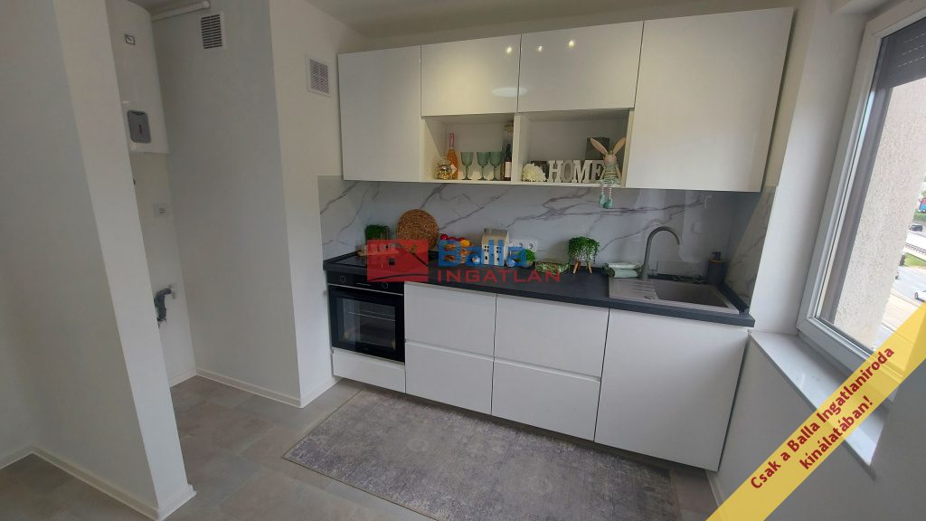 A felújítás során megtörtént a burkolatok cseréje, szaniterek, lámpák, kapcsolók, ÚJ A KONYHABÚTOR is . Cserélték a villany-, és vízvezetéket is.